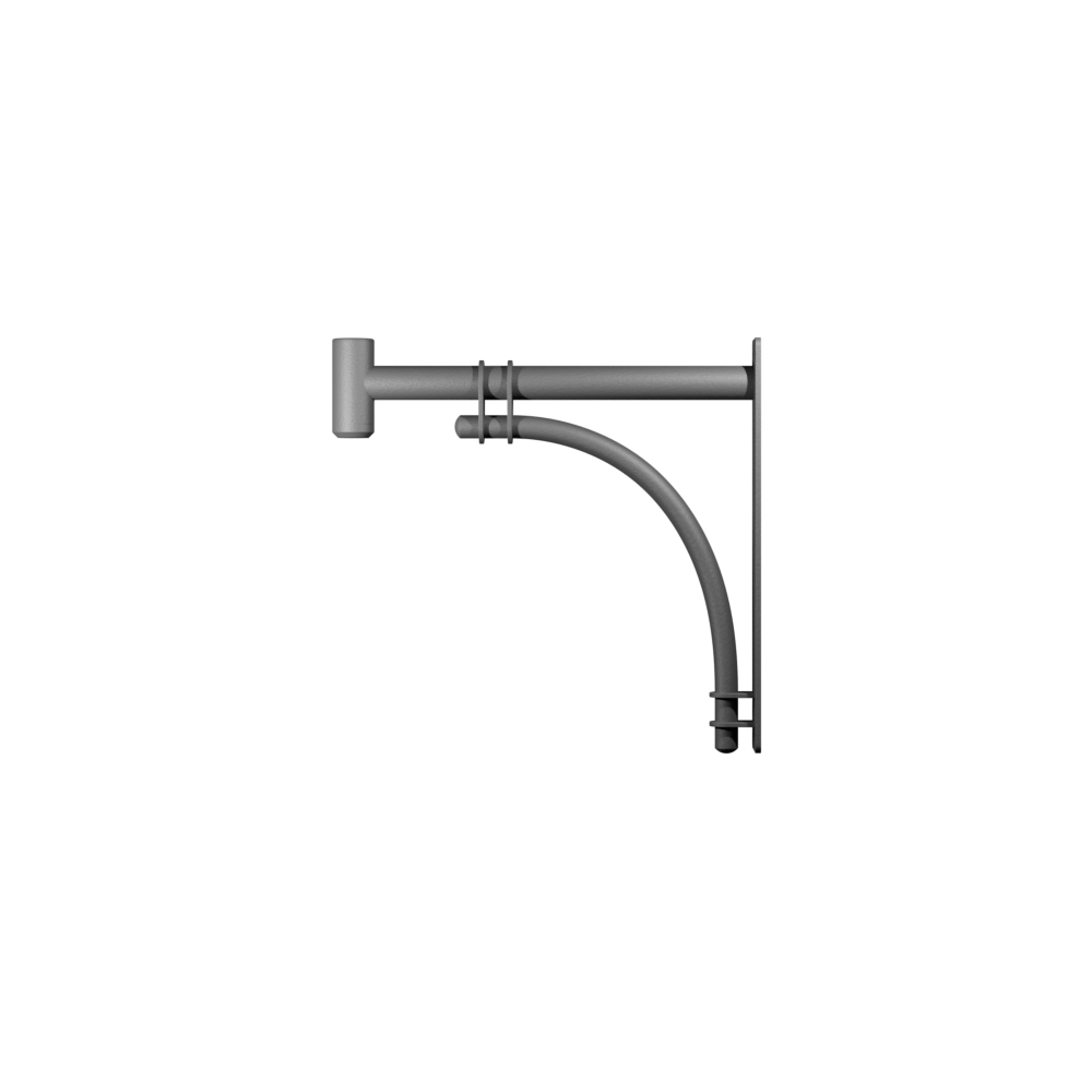Wandarm vollständig aus kaltverzinktem Stahl, mit einem 3/4" GAS-Anschluss zur Montage der Leuchte, interner Kabelführung und Erdungsklemme. Wandbefestigung mit Spreizdübeln.