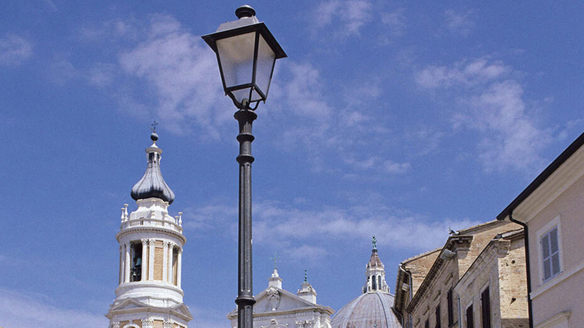 Installation von gusseisernen Straßenlaternen in Loreto (MC), Italien.