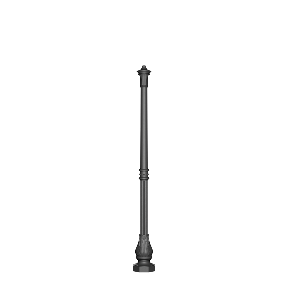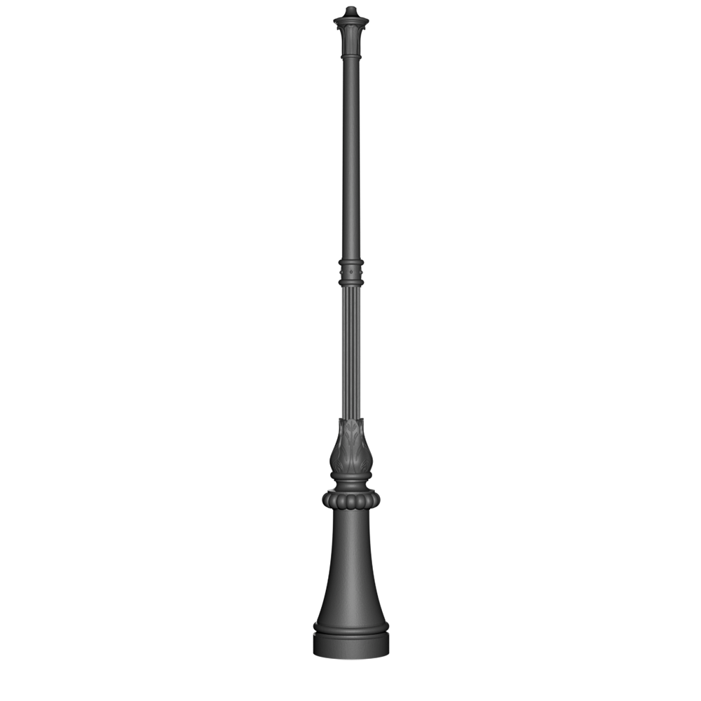 Cast iron post. Circular base with inspection door. Columns decorated with leaves and grooves. Internal core made of hot-dip galvanized steel.