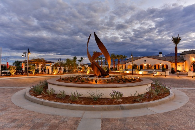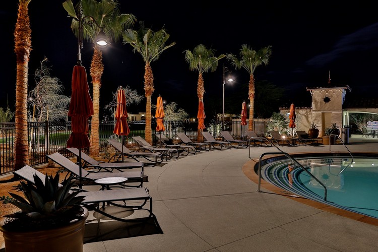 Griffin Ranch is a charming residence at La Quinta in California. The central square of the residence, which gives access to the great swimming pool, has been illuminated with Maia lampposts, Light 31 lighting fixtures and Light 804. PDF presentation
