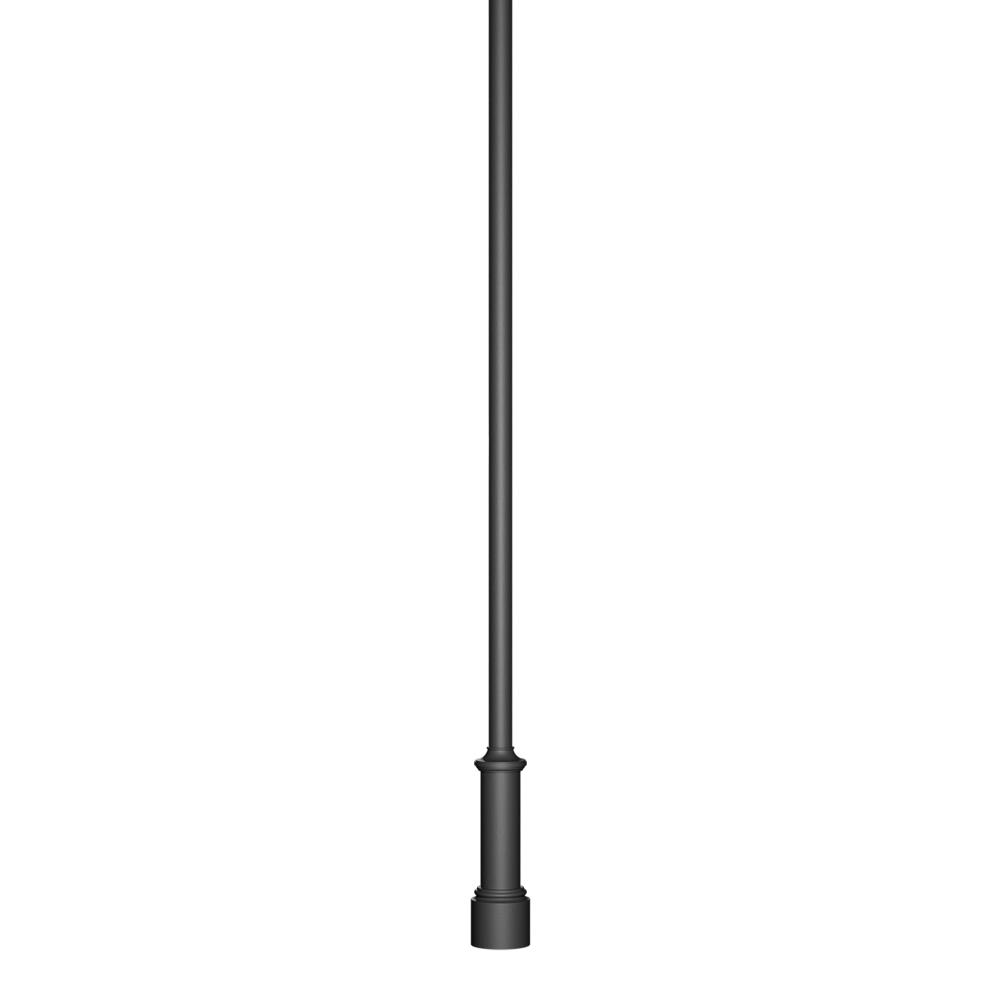 Tapered cylindrical hot-dip galvanized steel post. Cast iron base and intermediate connection with aluminum inspection hatch for terminal block.