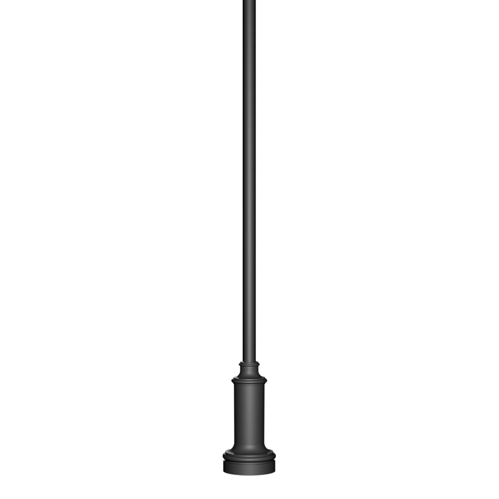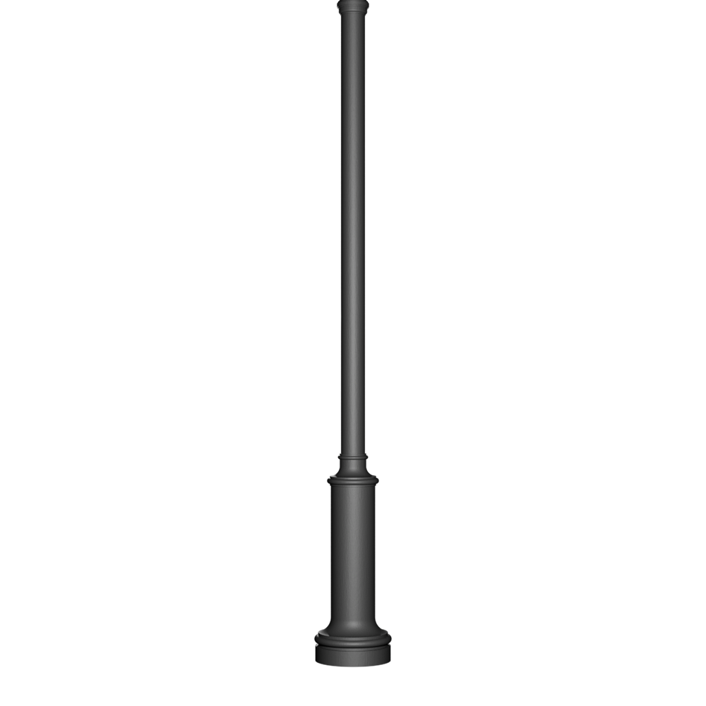 Tapered pole with circular section made of hot-dip galvanised steel, featuring a cast iron base with an inspection door for the terminal block.