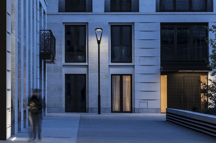 The illumination is the fruit of a design by Nulty+ and Maynard who, in collaboration with Neri, designed an aluminium lamppost with an elegantly shaped lamp in contemporary style, the realization of which was entrusted to Neri Spa. A product that revisits the heritage aesthetic of the lamp in a contemporary key.