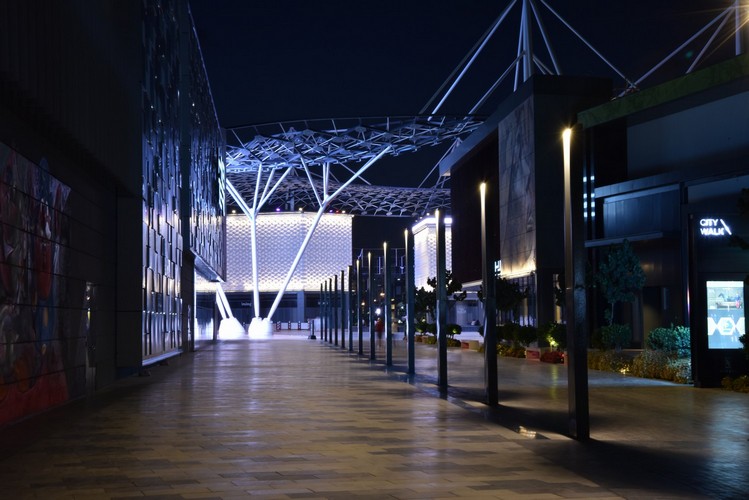 City Walk 2, in Dubai, is an area for elegant shopping, with eating-places and shops overlooking the principal streets. Neri studied various products, aligned with the essential aspects of the buildings, to illuminate this space, all with LED sources.
