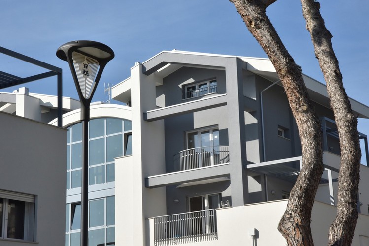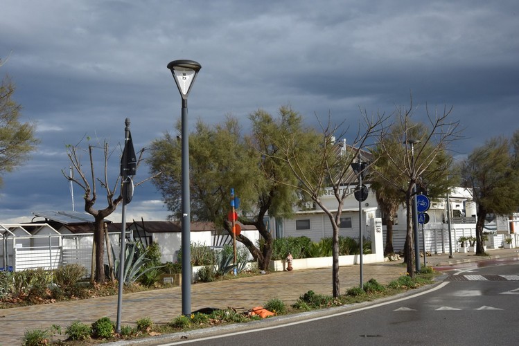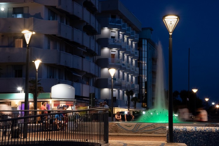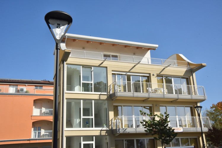 As part of an energy upgrading project, the old lights have been replaced with 700 Lang fixtures. These were customized by inserting the blade, which in this case bore the municipal coat-of-arms. PDF presentation