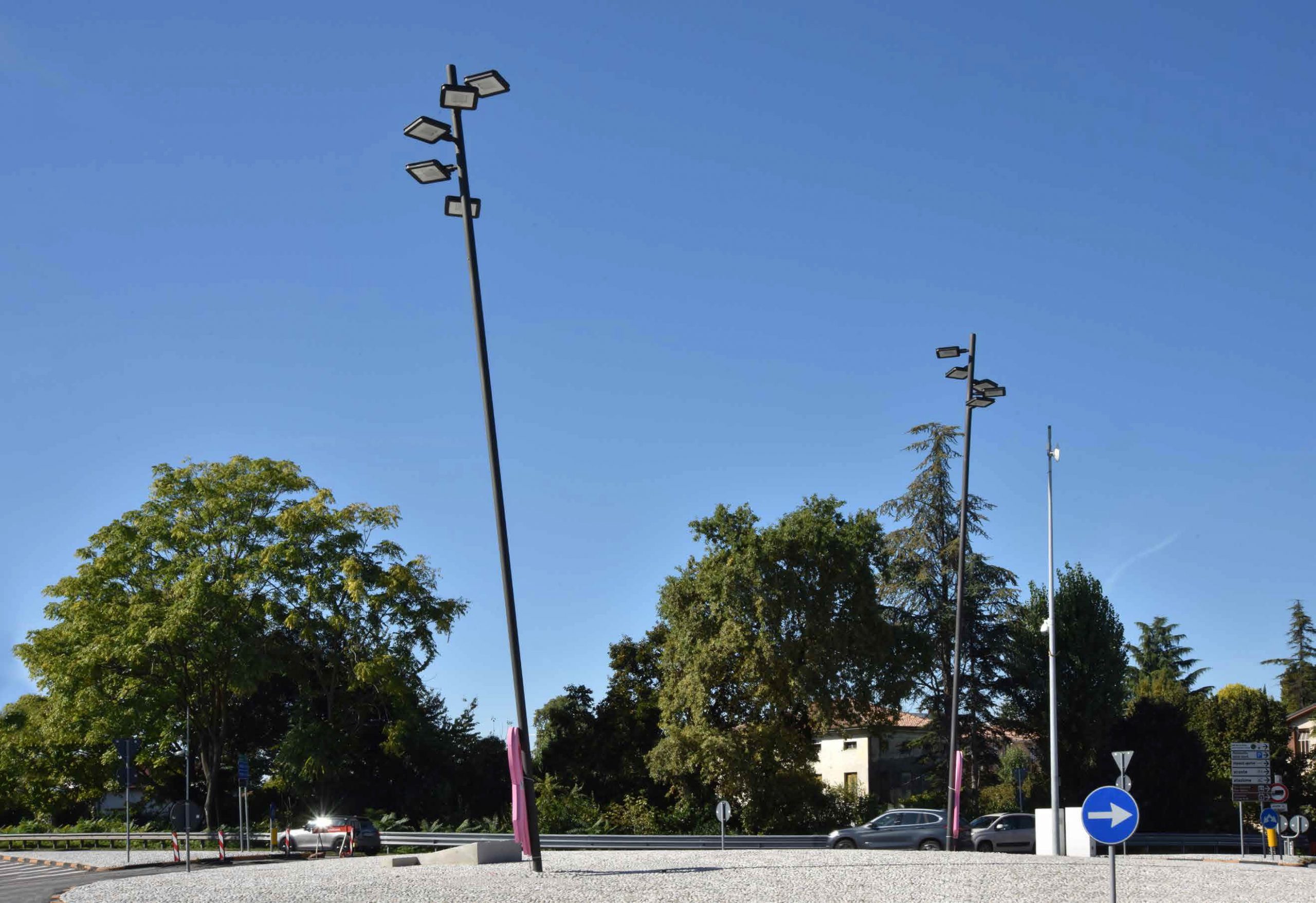 How to illuminate an important roundabout without recourse to a large number of lampposts? Torre Matar was the solution for the Ponte di Piave project: two oblique lampposts, 13m metres high, with 5 staggered Matars. Innovative aesthetics and excellent lighting technology results.