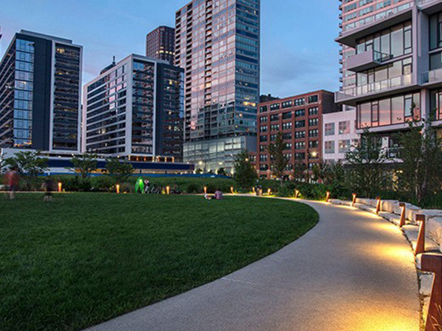 El Chicago Riverwalk, conocido como "The Walk", es una mezcla de sofisticación urbana y belleza natural. En el corazón de este entorno icónico, el complejo histórico en 10 & 120 South Riverside Plaza se erige como un testimonio del diseño atemporal. Nebula ha sido elegida para realzar este espacio emblemático. Con su diseño estilizado y su capacidad para integrarse perfectamente con la arquitectura, Nebula transforma la experiencia a orillas del río, resaltando el horizonte y proyectando un brillo cálido y acogedor sobre toda el área circundante.
