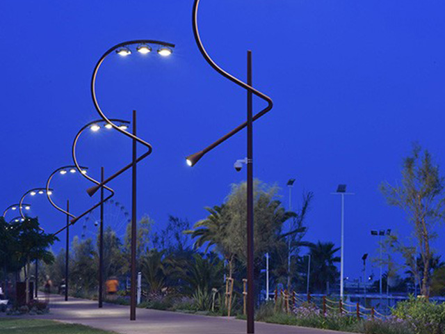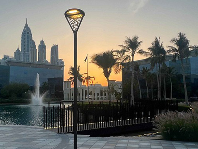Con el Dubai Water Canal, la ciudad implementó una grandiosa transformación urbana, dando lugar a un amplio espacio público. Neri ha proporcionado un farol de alta tecnología que no solo ilumina el recorrido peatonal, sino que, reflejándose en el agua, crea un fondo escénico único.