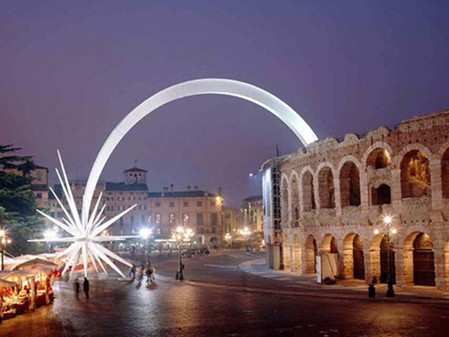ermo, una joya medieval en la región de las Marcas, revela su magnificencia en la Piazza del Popolo. Este encantador "salón urbano", rodeado de logias del siglo XV y dominado por el majestuoso Palazzo dei Priori, ha sido iluminado magistralmente por Neri. Nuestra luminaria Light 803, enriquecida con soportes hechos a medida, realza la belleza histórica de la plaza, creando una atmósfera única y evocadora.