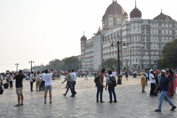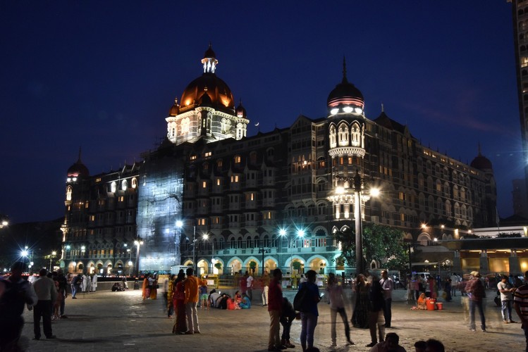 Las linternas en la parte superior de los postes de luz originales de dos brazos que iluminan la plaza frente a la Puerta de la India en Mumbai han sido reemplazadas por nuestras Light 21.