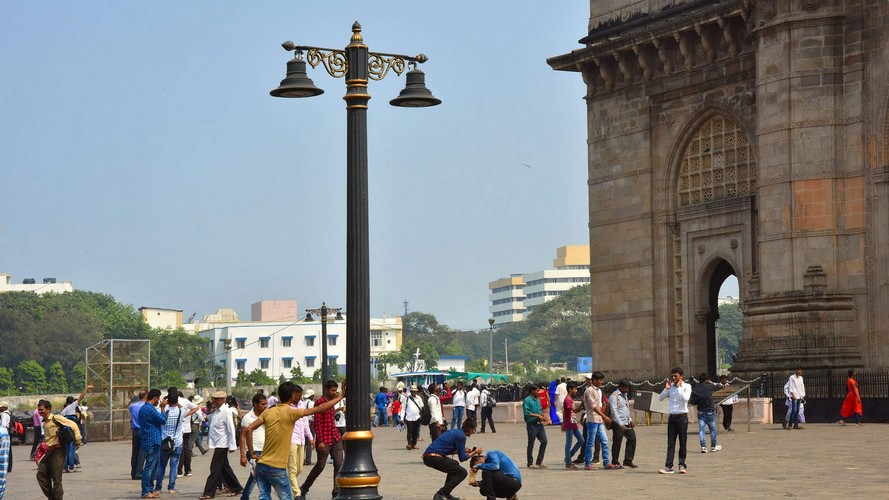 Las farolas que iluminan la plaza de la Puerta de la India en Bombay son las originales. Se trata de grandes columnas de fundición de hierro con dos brazos que sostenían dos faroles. Hemos sustituido los faroles, ya destruidos, por el modelo Light 21; que en lugar de estar montados hacia arriba como los anteriores, se han aplicado en suspensión.