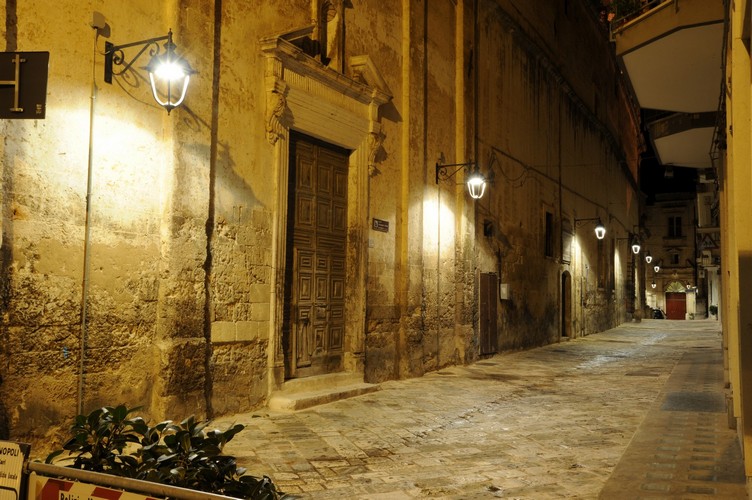 El casco antiguo de Monopoli es de origen medieval temprano y da al mar. “Contrada” es el término medieval para un barrio de la ciudad. Las antiguas linternas artesanales, instaladas en la década de 1980, han sido reemplazadas por Light 804, para garantizar mejores resultados en términos de tecnología de iluminación y un ahorro energético sustancial.
