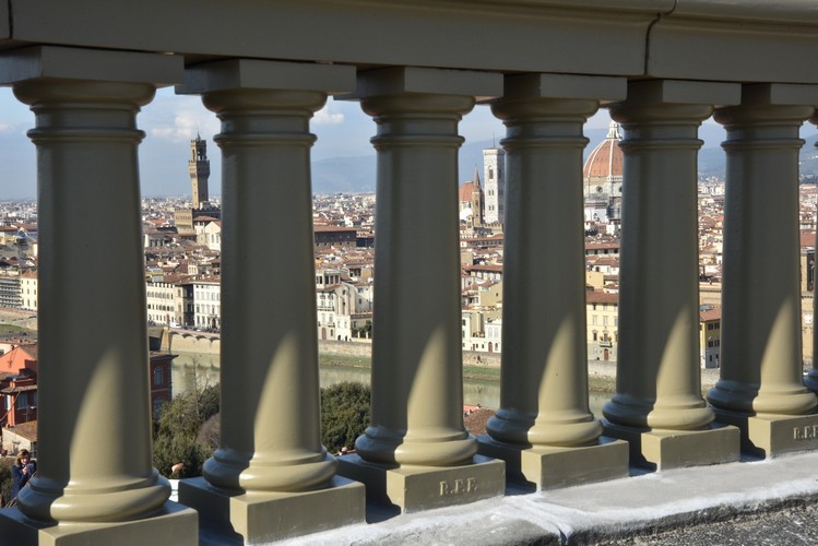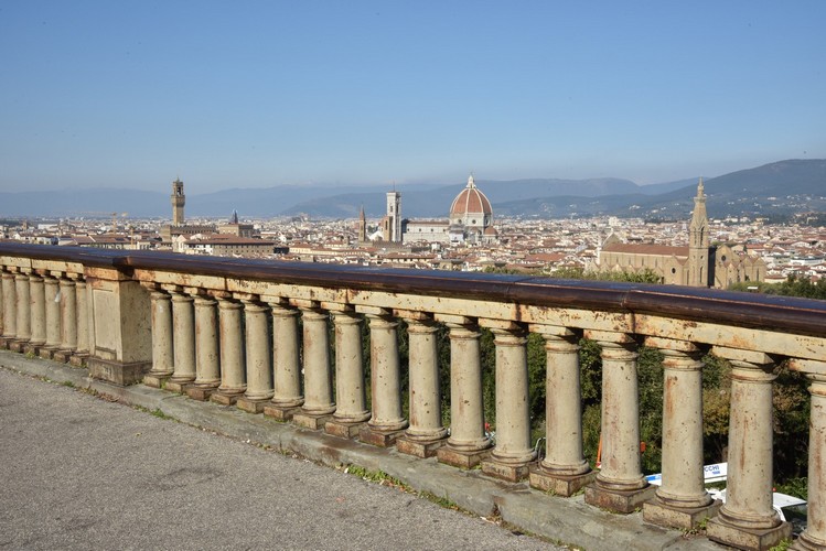 Piazzale Michelangelo ofrece la mejor panorámica de Florencia.La barandilla metálica fue creada por las Reales Fundiciones de Follonica.Casi 170 años después, la restauración de Neri ha recuperado su esplendor original. Presentación PDF